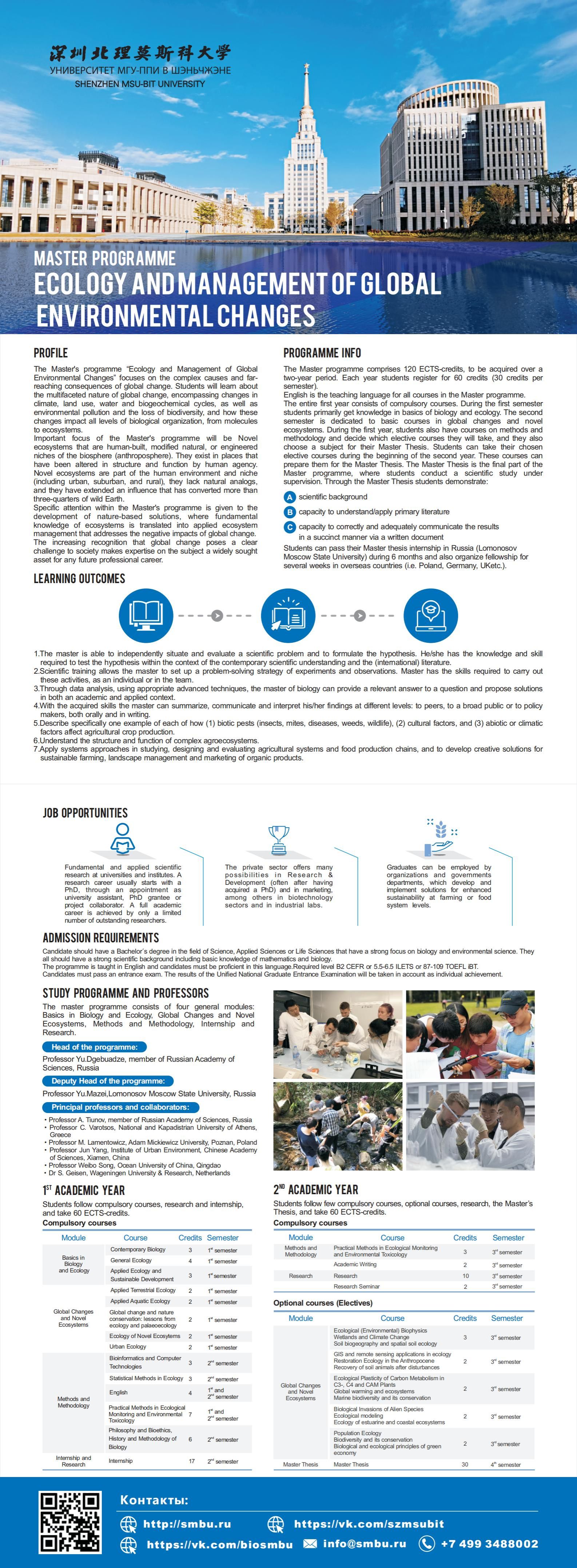球变化与新型生态系统 | 生态(环境)生物物理学全 湿地与气候变化 土壤生物地理学与空间土壤生态学 | 3 | 第三学期 |