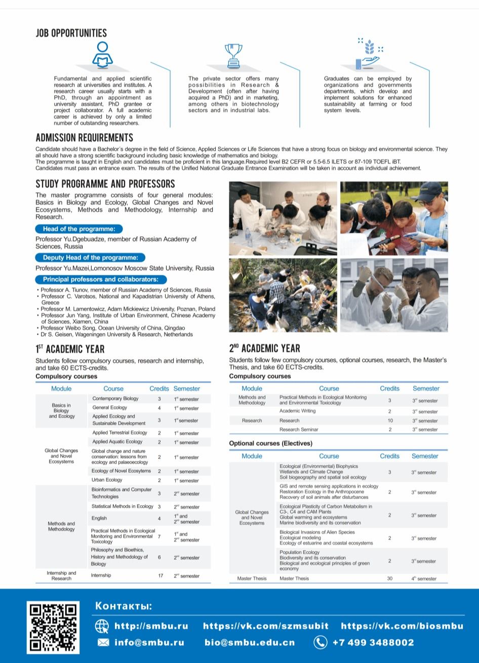 考生应取得科学、应用科学或生命科学专业的学士学位,修读方向为生物学和环境科学。考生应具备较强的科学背景,掌握数学和生物学的基础知识。